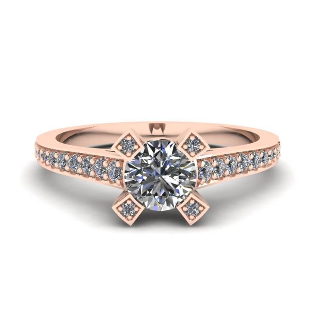 Reversed Prong Style Round Diamond Ring in Rose Gold